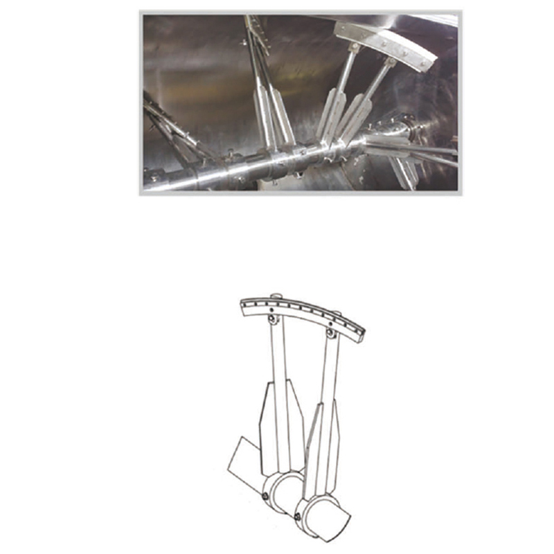 2.攪拌軸的槳葉上帶有刮壁,能使筒壁及筒壁兩側(cè)干凈無余料。