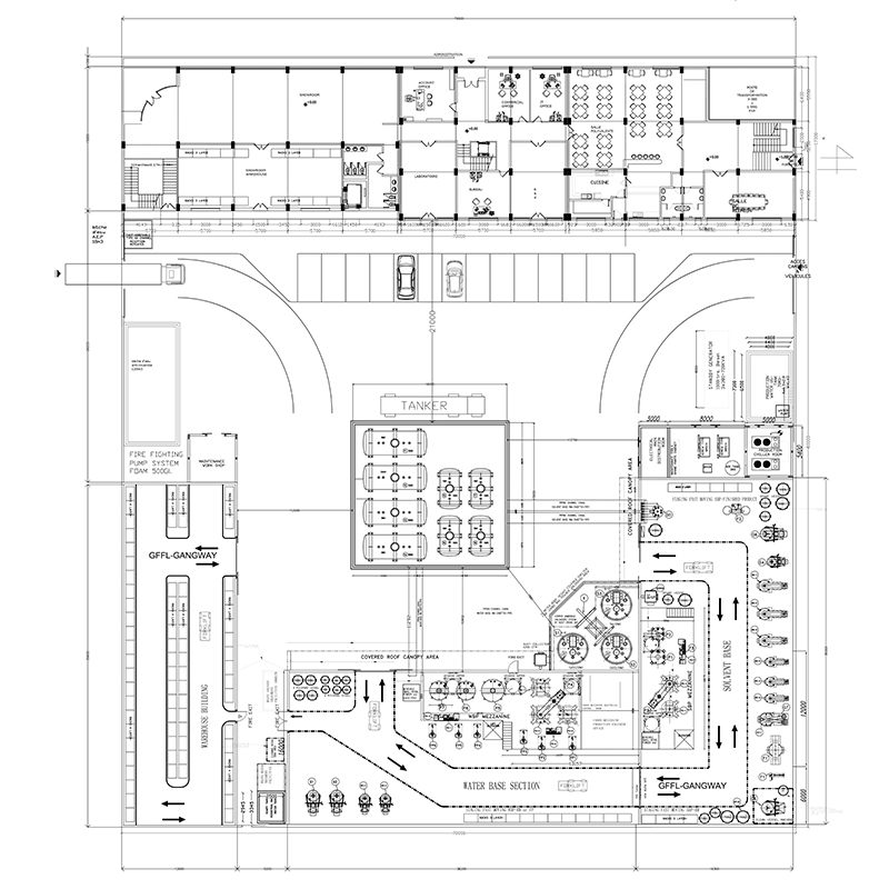 2. 液體:根據(jù)項目實際需要,設計儲罐容積和數(shù)量,確定罐區(qū)位置和結構。輸送方式:選用液體智能計量泵、負壓上料。